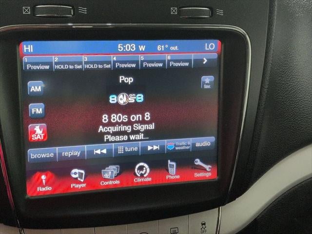 8.4 Inch Touchscreen Display, Journey GT, 4D Sport Utility, 3.6L V6 24V VVT, 6-Speed Automatic, AWD, Granite Crystal Metallic Clearcoat, Red Leather, Anti-whiplash front head restraints, Auto-dimming Rear-View mirror, Automatic temperature control, Brake assist, Dual front impact airbags, Dual front side impact airbags, Front dual zone A/C, Front fog lights, Fully automatic headlights, Heated front seats, Heated steering wheel, High Performance Suspension, Illuminated entry, Knee airbag, Leather Trimmed Seats w/Perforated Panels, Low tire pressure warning, Occupant sensing airbag, Overhead airbag, ParkView Rear Back-Up Camera, Power driver seat, Rear air conditioning, Remote keyless entry, Speed-sensing steering, Speed-Sensitive Wipers, Steering wheel mounted audio controls, Telescoping steering wheel, Tilt steering wheel, Variably intermittent wipers, Wheels: 19 x 7.0 Painted Aluminum.