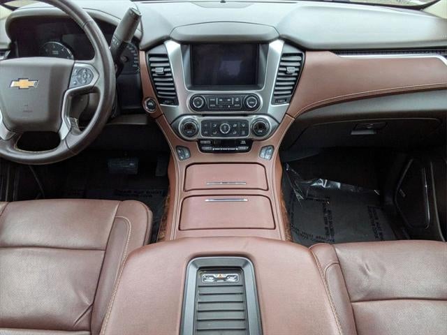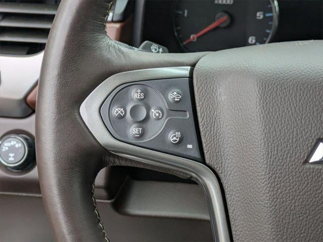 Handsfree Phone and Audio, Remote Start System, Forward Collision Alert, Lane Keep Assist with Lane Departure Warning, Lane Change Alert with Side Blind Zone Alert, Rear Cross Traffic Alert, Automatic Emergency Braking, Front and Rear Park Assist, Tahoe Premier, 4D Sport Utility, EcoTec3 6.2L V8, 10-Speed Automatic with Overdrive, 4WD, Iridescent Pearl Tricoat, Cocoa/Mahogany Leather, 3.23 Rear Axle Ratio, 3rd Row 60/40 Power Fold Split-Bench, 6.2L Performance Package, Adaptive suspension, Adjustable pedals, All-Weather Floor Liner Package (LPO), Apple CarPlay/Android Auto, Auto High-beam Headlights, Auto-Dimming Inside Rear-View Mirror, Auto-dimming Rear-View mirror, Auto-leveling suspension, Automatic Emergency Braking, Automatic temperature control, Bluetooth® for Phone, Bose Centerpoint Premium 10-Speaker Surround Sound, Brake assist, CD player, Driver Inboard & Front Passenger Airbags, Dual front impact airbags, Dual front side impact airbags, Electronic Cruise Control w/Set & Resume Speed, Emergency communication system: OnStar and Chevrolet connected services capable, Enhanced Driver Alert Package (Y86), Enhanced Driver Information Center, Exterior Parking Camera Rear, Fog Lamps, Forward Collision Alert, Front & Rear Park Assist, Front dual zone A/C, Front fog lights, Front Heated Reclining Bucket Seats, Front Passenger 6-Way Power Seat Adjuster, Fully automatic headlights, Garage door transmitter, Hands Free Power Liftgate, Head-Up Display, Heated & Ventilated Driver & Front Passenger Seats, Heated 2nd Row Outboard Seats, Heated front seats, Heated Leather Wrapped Steering Wheel, Heated rear seats, High-Intensity Discharge Headlights, Integrated Trailer Brake Controller, IntelliBeam Headlamps, Lane Change Alert w/Side Blind Zone Alert, Lane Keep Assist w/Lane Departure Warning, Low tire pressure warning, Magnetic Ride Control Suspension Package, Memory seat, Memory Settings, Navigation System, Occupant sensing airbag, Overhead airbag, Passive Entry System, Pedal memory, Perforated Leather-Appointed Seat Trim, Power driver seat, Power Liftgate, Power passenger seat, Power Release 2nd Row Bucket Seats, Power Sunroof, Power Tilt & Telescopic Steering Column, Power-Adjustable Accelerator & Brake Pedals, Power-Folding Heated Outside Mirrors, Preferred Equipment Group 1LZ, Premier 6.2L Value Package, Push Button Keyless Start, Rain sensing wipers, Rear air conditioning, Rear Cross Traffic Alert, Rear Seat Blu-Ray/DVD Entertainment System, Remote Keyless Entry, Remote Vehicle Start, Roof-Mounted Luggage Rack Side Rails, SiriusXM NavTraffic, SiriusXM Radio, Speed-sensing steering, Steering wheel memory, Steering wheel mounted audio controls, Telescoping steering wheel, Tilt steering wheel, Universal Home Remote, Ventilated front seats, Wheels: 22 x 9 6-Spk Chrome Multi-Feature Design, Wireless Charging.