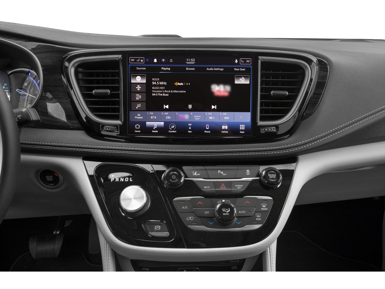 Handsfree Phone and Audio, Parksense Front and Rear Park Assist, Rear-Seat Reminder Alert, Remote Start System, Full–Speed Forward–Collision Warning Plus, Blind–Spot and Cross–Path Detection, Advanced Brake–Assist, Adaptive Cruise Control with Stop and Go, Hands–Free Power Liftgate, Seatback Video Screens, Hands–Free Sliding Doors, Easy–Slide 2nd–Row Bucket Seats, Safety Sphere, 360 Surround–View Camera System, Parallel and Perpendicular Park–Assist with Stop, Lane–Departure Warning Plus, Pedestrian Emergency Braking, LATCH–Ready Child–Seat Anchor System, Pacifica Hybrid Touring L, 4D Passenger Van, 3.6L V6, CVT, FWD, Brilliant Black Crystal Pearlcoat, Black/Alloy/Black w/Perforated Leather Trim Bucket Seats, 10.1 Touchscreen Display, 115V Auxiliary Power Outlet, 13 Alpine Speakers, Amazon Fire TV Built-In, Apple CarPlay, Auto-dimming Rear-View mirror, Automatic temperature control, Brake assist, Dual front impact airbags, Dual front side impact airbags, Emergency communication system: Uconnect Access, Exterior Parking Camera Rear, Famcam Interior Camera, Front dual zone A/C, Front fog lights, Front Passenger Auto Advance N Return, Front/Rear 1-Touch Up/Down Power Windows, Fully automatic headlights, Garage door transmitter, Google Android Auto, GPS Navigation, Hands Free Sliding Doors, Heated front seats, Heated steering wheel, High Definition Multimedia Interface, Illuminated entry, Integrated Active Noise Cancellation, Integrated Voice Command w/Bluetooth®, Knee airbag, Low tire pressure warning, Memory seat, Occupant sensing airbag, Overhead airbag, Perforated Leather Trim Bucket Seats, Power Adjust 8-Way Front Passenger Seat, Power driver seat, Power Liftgate, Power Passenger Lumbar Adjust, Rain sensing wipers, Rear air conditioning, Remote keyless entry, Seatback Video Screens, SiriusXM Radio Service, SiriusXM Satellite Radio, Steering wheel mounted audio controls, Telescoping steering wheel, Tilt steering wheel, Uconnect Theater Family Group, Variably intermittent wipers.