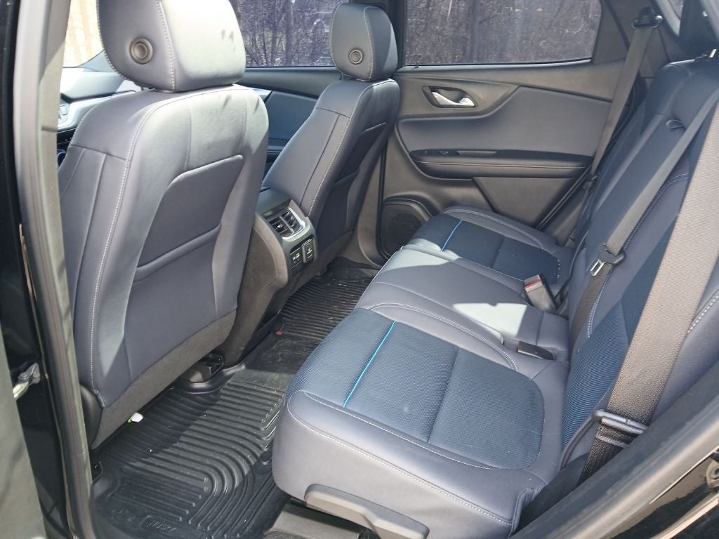 Handsfree Phone and Audio, Rear-Seat Reminder Alert, Remote Start System, Lane Keep Assist w/Lane Departure Warning, Automatic Emergency Braking, Front Pedestrian Braking, Forward Collision Alert, Following Distance Indicator, Lane Change Alert with Side Blind Zone Alert, Rear Cross Traffic Alert, 10.2 Touchscreen Display, Blazer RS, 4D Sport Utility, 3.6L V6 SIDI, 9-Speed Automatic with Overdrive, AWD, Black, Jet Black/Nightshift Blue Leather, 6-Way Power Front Passenger Seat Adjuster, 8-Way Power Driver Seat Adjuster, Apple CarPlay/Android Auto, Auto High-beam Headlights, Auto-dimming Rear-View mirror, Automatic temperature control, Bose Premium 8-Speaker Audio System Feature, Brake assist, Child-Seat-Sensing Airbag, Dual front impact airbags, Dual front side impact airbags, Emergency communication system: OnStar and Chevrolet connected services capable, Enhanced Convenience Package, Front dual zone A/C, Fully automatic headlights, Garage door transmitter, Heated Driver & Front Passenger Seats, Heated front seats, Heated Rear Outboard Seating Positions, Heated Steering Wheel, Illuminated entry, Knee airbag, Low tire pressure warning, Memory Settings For Driver Seat & Exterior Mirrors, Navigation System, Occupant sensing airbag, Overhead airbag, Perforated Leather-Appointed Seat Trim, Power driver seat, Power Liftgate, Power Panoramic Tilt-Sliding Sunroof, Power passenger seat, Power Tilt & Telescoping Steering Column, Rear Park Assist w/Audible Warning, Remote keyless entry, Ride & Handling Suspension, SiriusXM w/360L, Speed-sensing steering, Steering wheel mounted audio controls, Telescoping steering wheel, Tilt steering wheel, Variably intermittent wipers, Ventilated Driver & Front Passenger Seats, Wheels: 20 Technical Gray Aluminum.