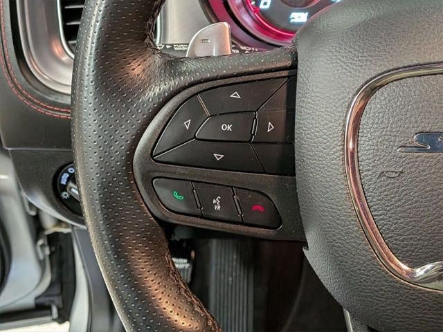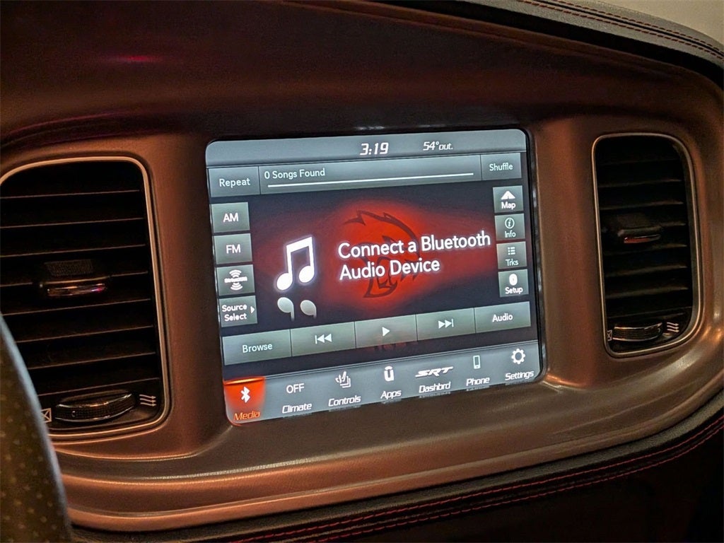 Handsfree Phone and Audio, Remote Start System, Blind–Spot and Cross–Path Detection, ParkSense® Rear Park–Assist System, Line Lock Launch Control, High–Performance Suspension, Charger R/T Scat Pack Widebody, 4D Sedan, SRT HEMI 6.4L V8 MDS, 8-Speed Automatic, RWD, Triple Nickel Clearcoat, Ruby Red/Black w/Scat Pack Logo Nappa/Alcantara Seat, 4G LTE Wi-Fi Hot Spot, 5-Year SiriusXM Traffic Service, 5-Year SiriusXM Travel Link Service, 8.4 Touchscreen Display, Adaptive Damping Suspension (DISC), Anti-whiplash front head restraints, Apple CarPlay, Auto Adjust In Reverse Exterior Mirrors, Auto-Dimming Exterior Driver Mirror, Auto-dimming Rear-View mirror, Automatic temperature control, Blind Spot & Cross Path Detection, Blind Spot Memory/Power/Heat Mirror, Body Color Fender Flares, Brake assist, Brembo 6-Pot Fixed Front Caliper Brakes, Dual front impact airbags, Dual front side impact airbags, Emergency communication system: SiriusXM Guardian, Flat-Bottom Steering Wheel, Front dual zone A/C, Fully automatic headlights, Garage door transmitter: HomeLink, Google Android Auto, GPS Navigation, HD Radio, Heated Front Seats, Heated steering wheel, Integrated Voice Command w/Bluetooth®, Knee airbag, Low tire pressure warning, Nappa/Alcantara Seats w/Logo, Navigation & Travel Group, Occupant sensing airbag, Overhead airbag, ParkView Rear Back-Up Camera, Performance Shift Indicator, Plus Group, Power Front Driver/Passenger Seats, Power Sunroof, Power Tilt/Telescope Steering Column, Radio/Driver Seat/Mirrors Memory, Remote keyless entry, Scat Pack Logo Nappa/Alcantara Seat, Speed-Sensitive Wipers, Sport steering wheel, Steering wheel mounted audio controls, Telescoping steering wheel, Tilt steering wheel, Ventilated Front Seats, Wheels: 20 x 9.5 Low-Gloss Black Knurled, Widebody Competition Suspension, Widebody Package.