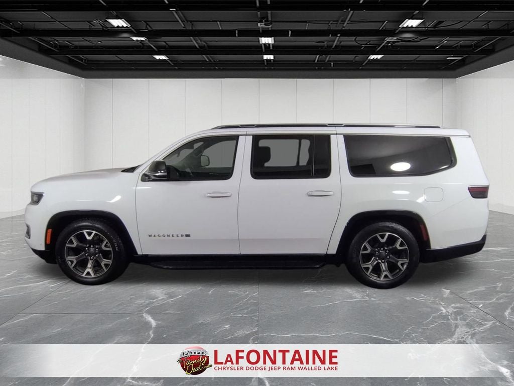 10.1 Inch Touchscreen Display, 4G LTE Wi-Fi Hot Spot, Class IV Receiver-Hitch, Handsfree Phone and Audio, Remote Start System, Active Lane–Management System, Full–Speed Forward–Collision Warning Plus, Blind–Spot and Cross–Path Detection, Adaptive Cruise Control with Stop and Go, ParkSense® Front and Rear Park–Assist with Stop, Pedestrian Emergency–Braking, Wireless Charging–Pad, Alpine 9–Speaker System with Subwoofer, Wagoneer L Series III, 4D Sport Utility, 3.0L I6, 8-Speed Automatic, 4WD, Bright White Clearcoat, Black Leather, Adjustable pedals, Anti-whiplash front head restraints, Apple CarPlay/Android Auto, Auto High-beam Headlights, Auto-dimming Rear-View mirror, Auto-leveling suspension, Automatic temperature control, Brake assist, Dual front impact airbags, Dual front side impact airbags, Emergency communication system: Wagoneer Connect, Exterior Parking Camera Rear, Front dual zone A/C, Fully automatic headlights, Garage door transmitter, Heads-Up Display, Heated front seats, Heated rear seats, Heated steering wheel, Illuminated entry, Knee airbag, Leather Trimmed Bucket Seats, Low tire pressure warning, Memory seat, Navigation System, Occupant sensing airbag, Overhead airbag, Pedal memory, Power adjustable front head restraints, Power driver seat, Power Liftgate, Power passenger seat, Quadra-Lift Air Suspension, Rain sensing wipers, Rear air conditioning, Remote keyless entry, Speed-sensing steering, Speed-Sensitive Wipers, Steering wheel memory, Steering wheel mounted audio controls, Telescoping steering wheel, Tilt steering wheel, Ventilated front seats, Wheels: 20 x 9.0 Aluminum (DISC).