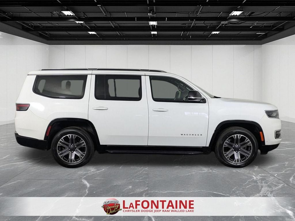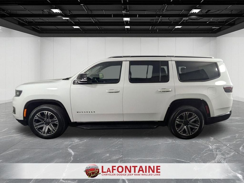 10.1 Inch Touchscreen Display, 4G LTE Wi-Fi Hot Spot, Class IV Receiver-Hitch, Handsfree Phone and Audio, Parksense Front and Rear Park Assist, Remote Start System, Active Lane–Management System, Full–Speed Forward–Collision Warning Plus, Blind–Spot and Cross–Path Detection, Adaptive Cruise Control with Stop and Go, Pedestrian Emergency–Braking, Alpine 9–Speaker System with Subwoofer, Wireless Charging–Pad, Hands–Free Power Liftgate, Side Steps, Wagoneer Series II, 4D Sport Utility, 3.0L I6, 8-Speed Automatic, 4WD, Bright White Clearcoat, Black Leather, 8-Passenger Seating, Adjustable pedals, Anti-whiplash front head restraints, Apple CarPlay/Android Auto, Auto-dimming Rear-View mirror, Auto-leveling suspension, Automatic temperature control, Brake assist, Dual front impact airbags, Dual front side impact airbags, Emergency communication system: Wagoneer Connect, Exterior Parking Camera Rear, Front dual zone A/C, Fully automatic headlights, Garage door transmitter, Heated front seats, Heated rear seats, Heated steering wheel, Illuminated entry, Knee airbag, Leather Trimmed Bucket Seats, Low tire pressure warning, Memory seat, Navigation System, Occupant sensing airbag, Overhead airbag, Pedal memory, Power adjustable front head restraints, Power driver seat, Power Liftgate, Power passenger seat, Rain sensing wipers, Rear air conditioning, Rear dual zone A/C, Remote keyless entry, Speed-sensing steering, Speed-Sensitive Wipers, Steering wheel memory, Steering wheel mounted audio controls, Telescoping steering wheel, Tilt steering wheel, Variably intermittent wipers, Ventilated front seats.