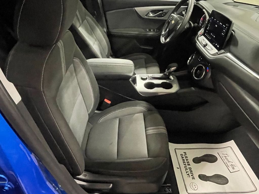 Handsfree Phone and Audio, Remote Start System, Lane Keep Assist w/Departure Warning, Automatic Emergency Braking, Front Pedestrian Braking, Forward Collision Alert, Blazer LT, 4D Sport Utility, 2.0L Turbocharged, 9-Speed Automatic with Overdrive, FWD, Riptide Blue, Gray Cloth, 8-Way Power Driver Seat Adjuster, Apple CarPlay/Android Auto, Auto High-beam Headlights, Automatic temperature control, Brake assist, Child-Seat-Sensing Airbag, Dual front impact airbags, Dual front side impact airbags, Emergency communication system: OnStar and Chevrolet connected services capable, Front dual zone A/C, Fully automatic headlights, Heated Driver and Front Passenger Seats, Heated front seats, Illuminated entry, Knee airbag, Low tire pressure warning, Occupant sensing airbag, Overhead airbag, Power driver seat, Premium audio system: Chevrolet Infotainment 3 Plus, Premium Cloth Seat Trim, Remote keyless entry, Ride and Handling Suspension, SiriusXM with 360L, Speed-sensing steering, Steering wheel mounted audio controls, Telescoping steering wheel, Tilt steering wheel, Variably intermittent wipers, Wheels: : 18 Grazen Metallic Aluminum.