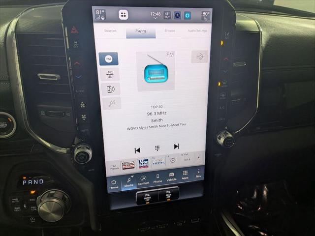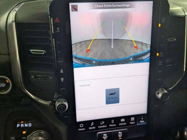Class IV Receiver-Hitch, Handsfree Phone and Audio, Parksense Front and Rear Park Assist, Remote Start System, Active Lane–Management System, Full–Speed Forward–Collision Warning Plus, Blind–Spot and Cross–Path Detection, Advanced Brake–Assist, Adaptive Cruise Control with Stop and Go, Pedestrian Emergency Braking, Power Tailgate, Front Passenger Interactive Display, 1500 Laramie, 4D Crew Cab, 3.0L I6, 8-Speed Automatic, 4WD, Blue Pearl, Black Leather, 14.4 Touchscreen Display, 3.55 Rear Axle Ratio, 4G LTE Wi-Fi Hot Spot, Active Noise Control System, Adjustable pedals, Anti-Spin Differential Rear Axle, Apple CarPlay/Android Auto, Auto High-beam Headlights, Auto Power-Folding Mirrors, Auto-Dimming Exterior Driver Mirror, Auto-dimming Rear-View mirror, Automatic temperature control, Brake assist, Cluster 12 TFT Color Display, Connected Travel and Traffic Services, Convex Wide-Angle Exterior Mirror Insert, Dual Exhaust with Black Tips, Dual front impact airbags, Dual front side impact airbags, Dual-Pane Panoramic Sunroof, Exterior Mirrors Approach Lamps, Exterior Mirrors Courtesy Lamps, Exterior Mirrors with Memory, Front dual zone A/C, Front fog lights, Front Passenger Interactive Display, Fully automatic headlights, Garage door transmitter, GPS Navigation, Harman/Kardon 19 Speaker Premium Sound, Heated front seats, Heated rear seats, Heated steering wheel, Illuminated entry, Integrated Voice Command with Bluetooth®, Laramie Level 2 Equipment Group, Leather Trimmed Bucket Seats, Low tire pressure warning, Memory seat, Mopar Black Tubular Side Steps, MOPAR Front and Rear Rubber Floor Mats, Night Edition, Occupant sensing airbag, Overhead airbag, ParkView Rear Back-Up Camera, Pedal memory, Power driver seat, Power passenger seat, Power Tailgate, Proximity Approach/Departure Lamps, Rain Sensitive Windshield Wipers, Remote keyless entry, SiriusXM Radio Service, SiriusXM with 360L, Speed control, Sport Performance Hood, Steering wheel mounted audio controls, Telescoping steering wheel, Tilt steering wheel, Ventilated front seats, Wheels: 22 x 9 Forged Aluminum.